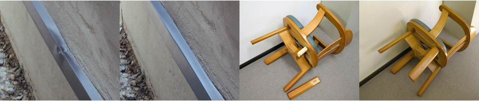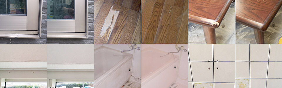 アルミ建材、外壁・タイル・石、フローリング等の木質建材、家具などに付いてしまったキズ、大きなへこみや割れまでご対応できます。