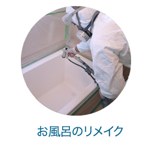 取替なしで、古くなったお風呂(浴室・浴槽)に再生塗装を行うリフォームのことです。壊したり、取り替えたり、という作業がないので再生・リメイクと呼んでいます。ほとんど全ての材質(ホーロー、FRP、ポリエステル、ステンレス、人工大理石)に対応できます。