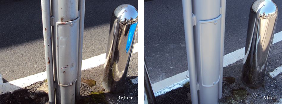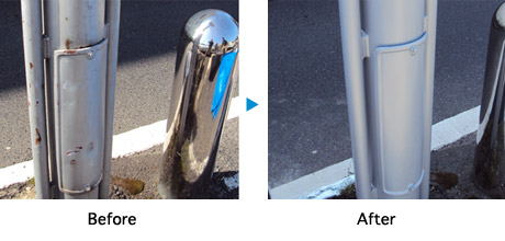 車両事故により、外灯の側面がへこみ、塗装が剥げたとの事で、補修しました。