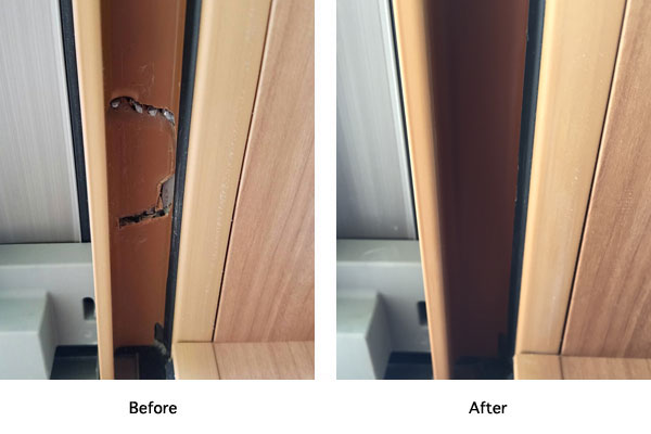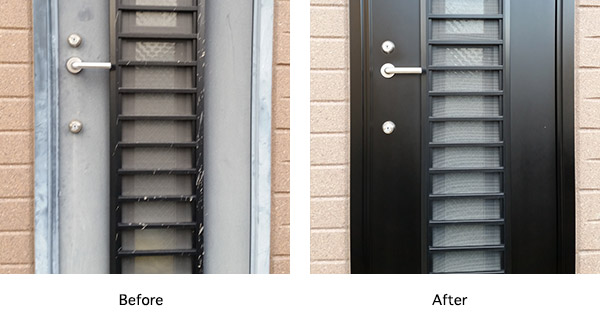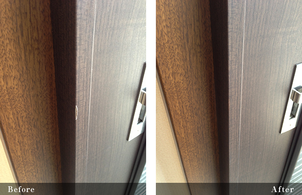 改修工事にて、勝手口ドアの小傷と変色が気になるとの事でした。