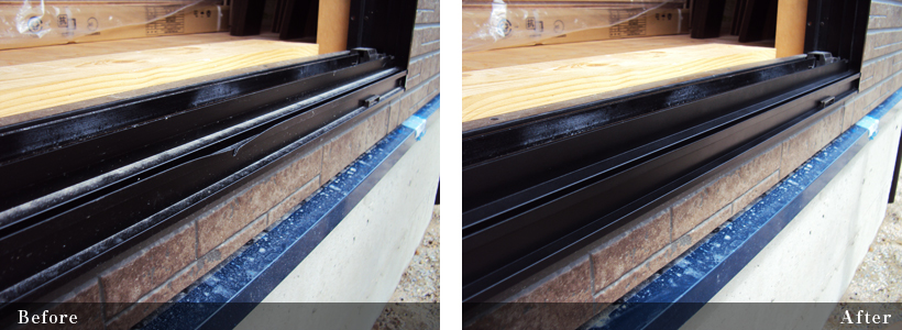 お引き渡し前の現場で、物をぶつけてレールがへの字に曲がってしまった為。