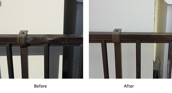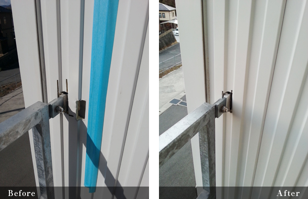 手すりの位置を変えた為に出来てしまった穴を埋めてほしいとのご依頼でした。