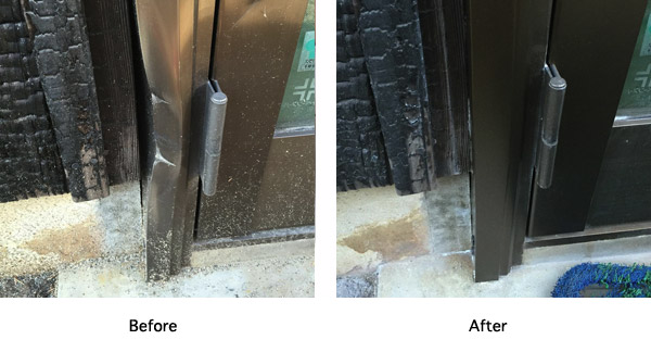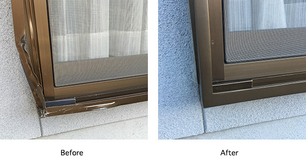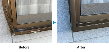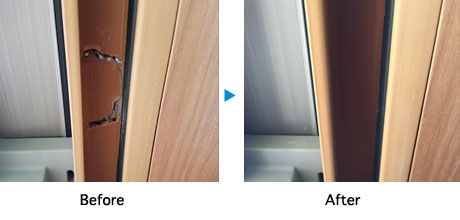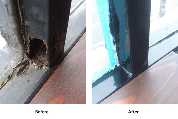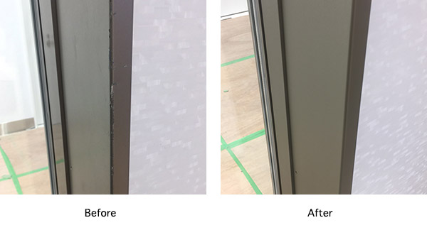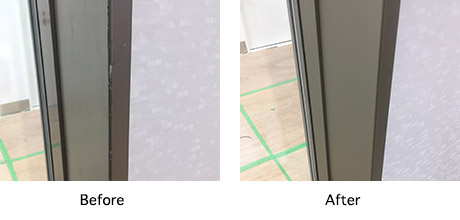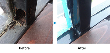 店舗改修工事で、経年劣化による窓枠の穴をキレイにしてほしいとのご依頼でした。(5ヶ所)