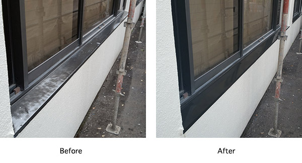 改修工事にて、アルミの水切りに小傷が入ってしまった為。