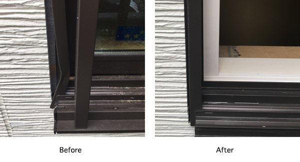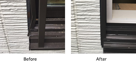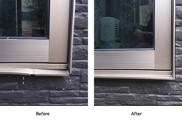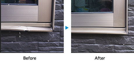 雨戸レールに物を引っ掛けてしまい、損傷してしまった為。