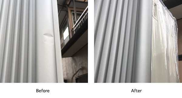 お客様がモノをぶつけてヘコませてしまったため、工務店様経由で補修ご依頼がありました。