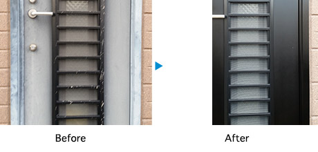 新築の現場で、モノがぶつかって変形してしまったため。(面格子はビルダーさんにて脱着)