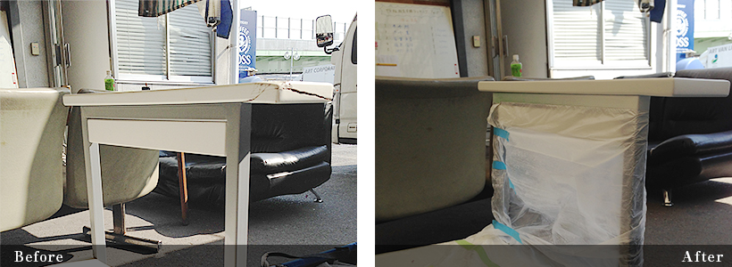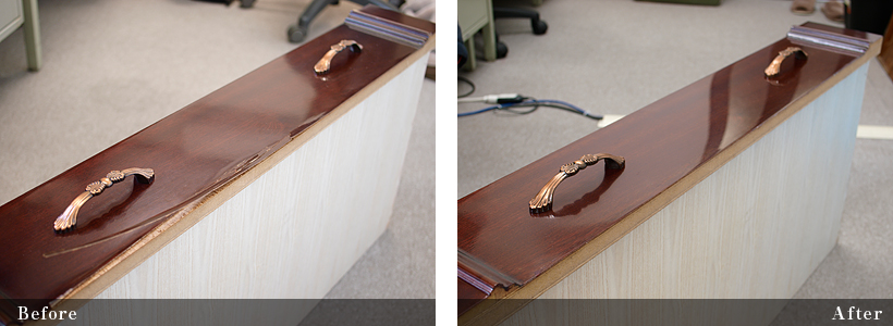 家具の搬入時、不慮の事故で天板が割れてしまった為