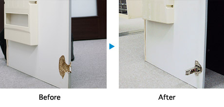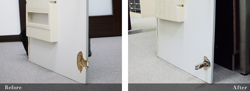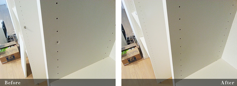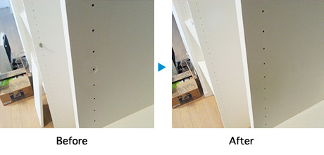 棚板を間違えて取り付けてしまい、ヘコミが出来たため。