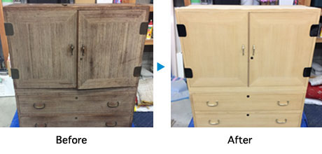 持ち主様からのご依頼で家具をキレイにしてほしいとのことでした金物の磨きと塗装も行いました。