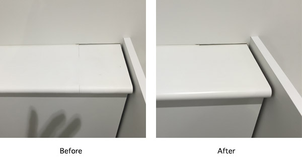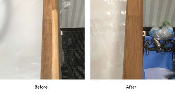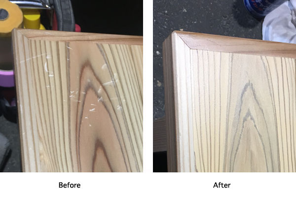 リフォーム工事で、養生テープを剥がしたら劣化していた表面のクリアも剥がれてしまったため。