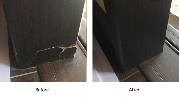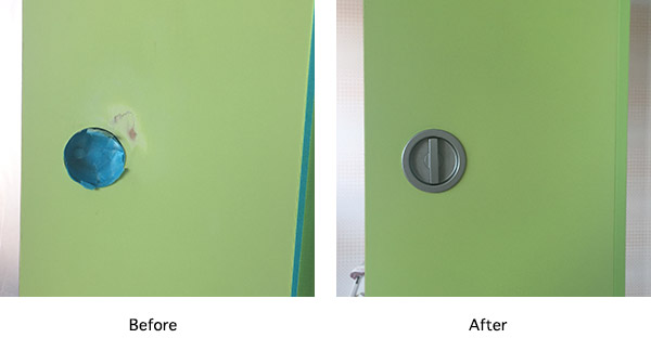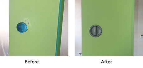 リフォームの建築中に、高温になった投光器で建具を焦がしてしまったため。
