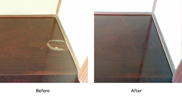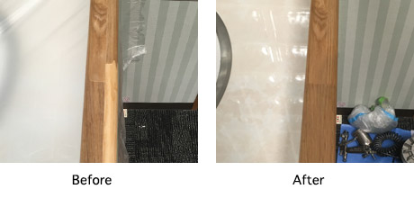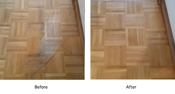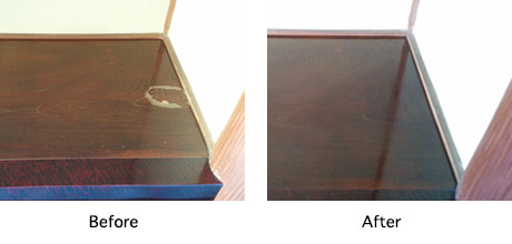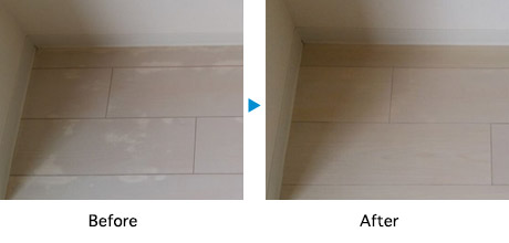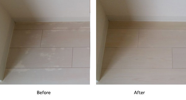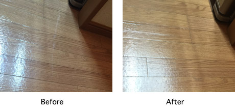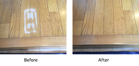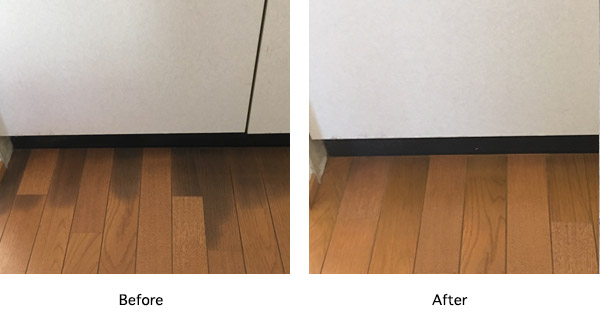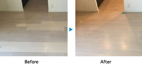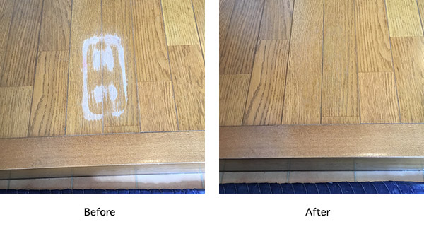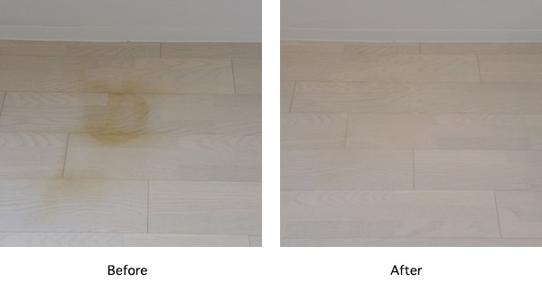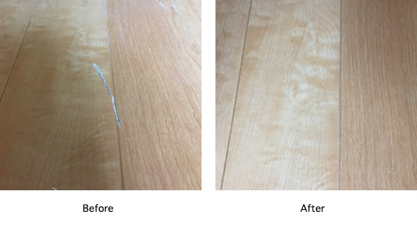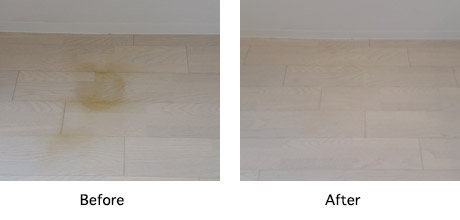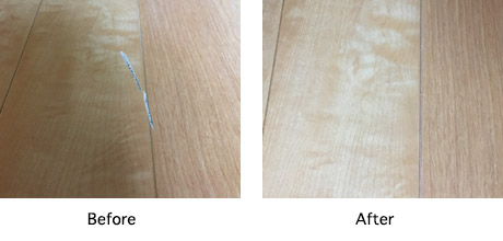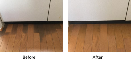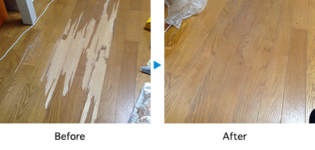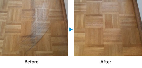 賃貸マンション退去後のメンテナンスで住人がフローリングにシミを付けてしまっていた為。