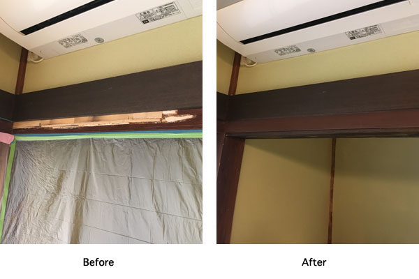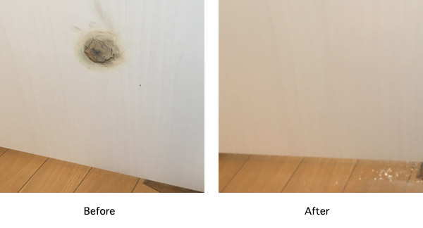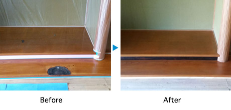 リフォームで、虫食いの巣穴を埋めて欲しいとのご依頼でした。
