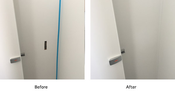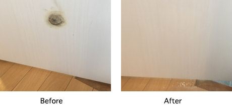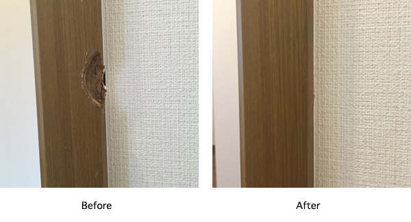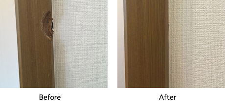 お客様がつっぱり棒を取り付けようとして、穴を開けてしまったため。