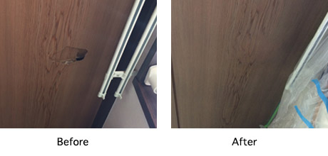 退去物件で、玄関先にある大きなキズが目立つので直してほしいとのご依頼でした。