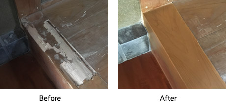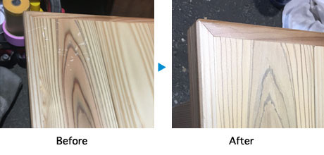 住宅改修工事にて、お客様が焼いてしまった床板をキレイにできないかと相談を受けました。