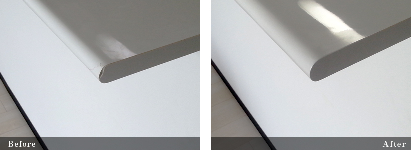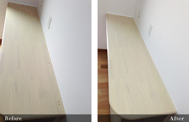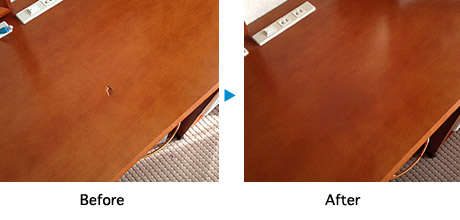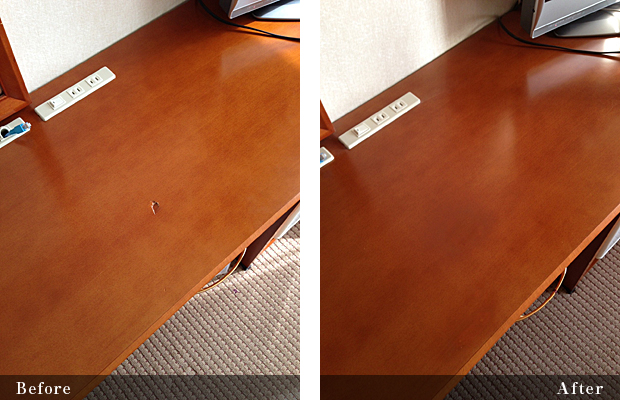ホテルの客間の机だったため、時間と費用をかけずに直したいということで、依頼がありました。