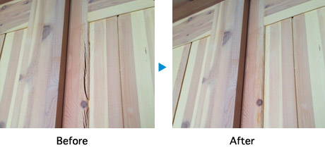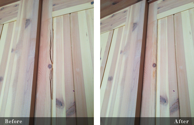 木の伸縮により、ボンドを付けて圧着していた木が割れてしまったため。