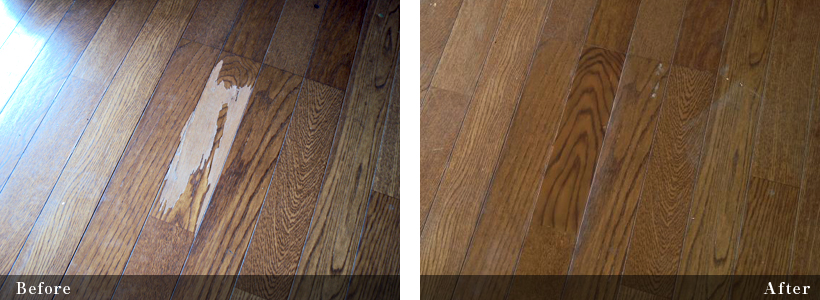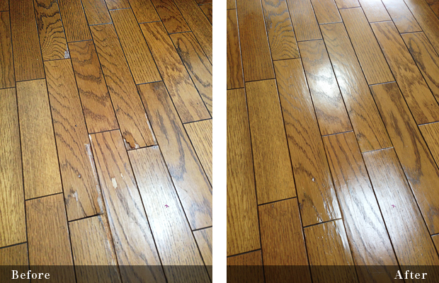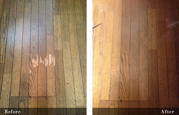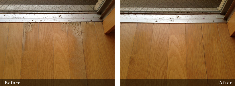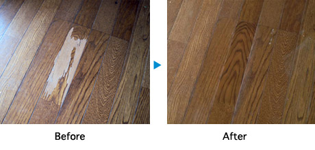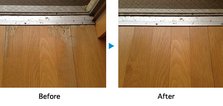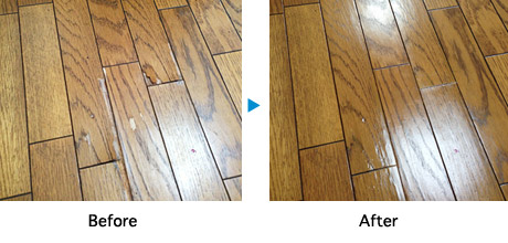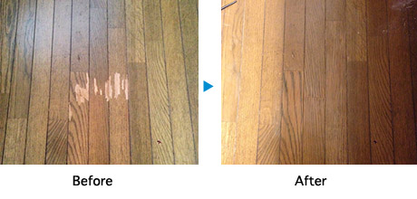 水分を含んで、フローリングの表面が浮いて剥がれてしまったため。