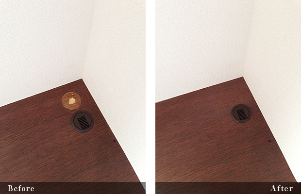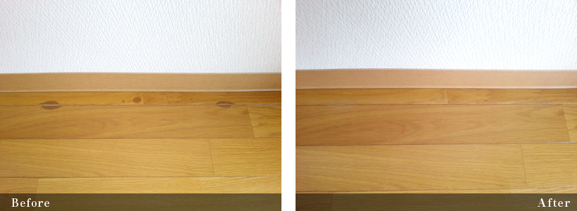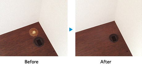 お香を焚いた際、受け皿が熱を持ちフロア表面が溶けて焦げ付いてしまったため。