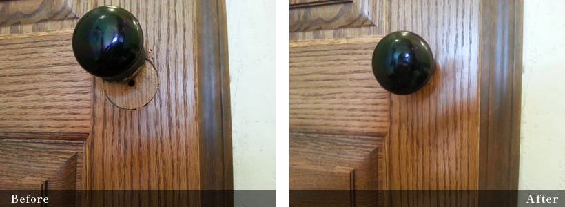 ドアノブを交換した際、取り付け位置の違いから穴が隠れないため。