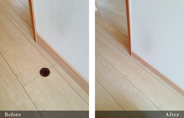 売り物件にて、張替えをすると費用が高くつくので補修してほしいとのことでした。