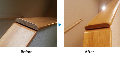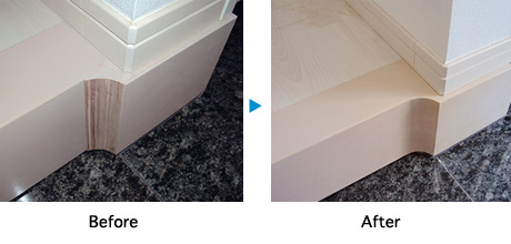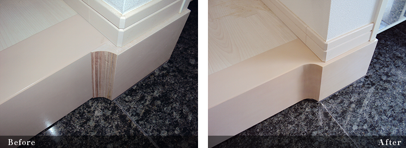 新築引き渡し後、お施主様から玄関框の入隅にアールを付けてほしいと言われたため(弊社施工は塗装のみ)