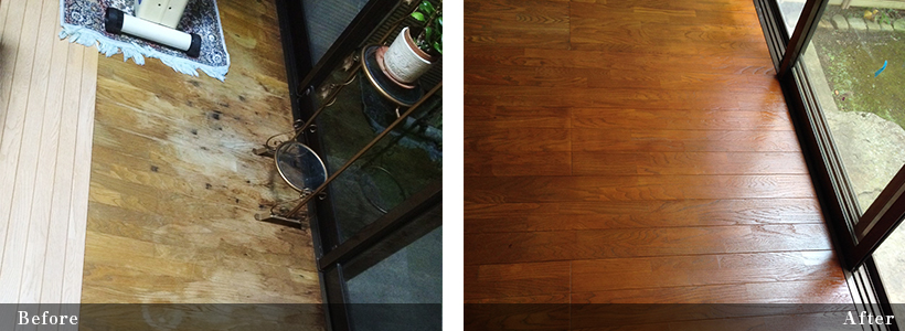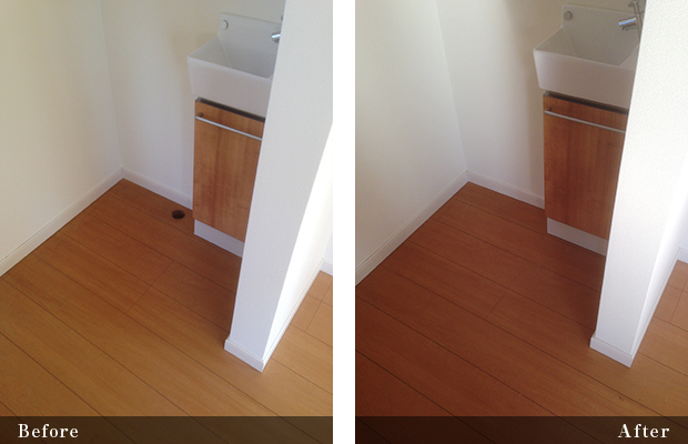アパートの退去後、フロアにあった傷を直して欲しいとの依頼でした。