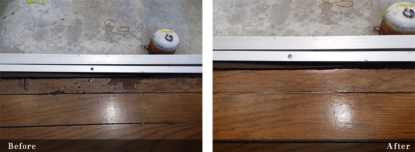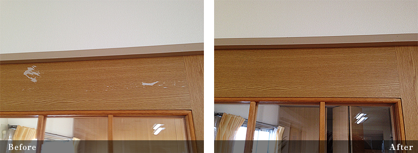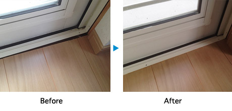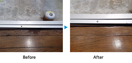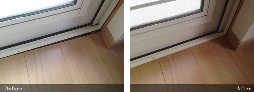 リフォームの現場で、掃き出し前の色抜けと黒カビをリペアでキレイにしてほしいとのご依頼でした。