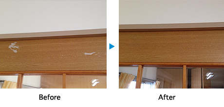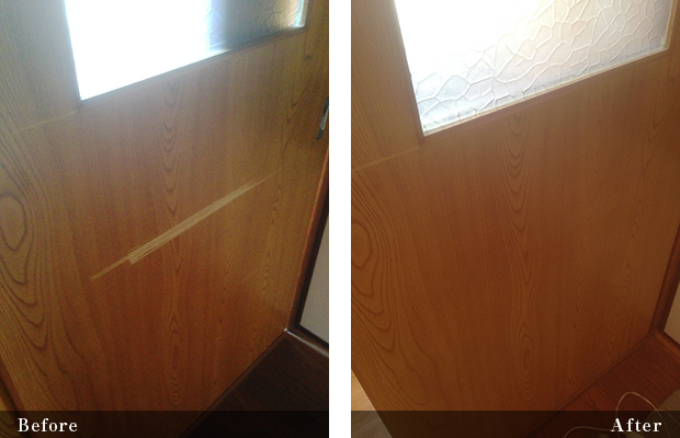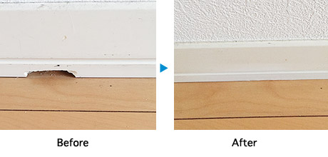 飼っていた犬が、ドアの枠(床から1m*4箇所)や巾木(2方・約3.5m)をかじったり引っ掻いたりして、ボロボロになってしまったとの事でした。