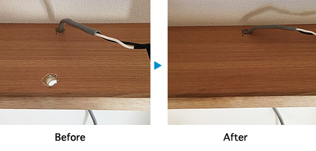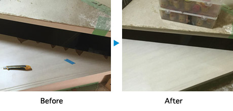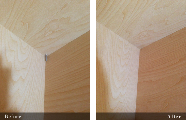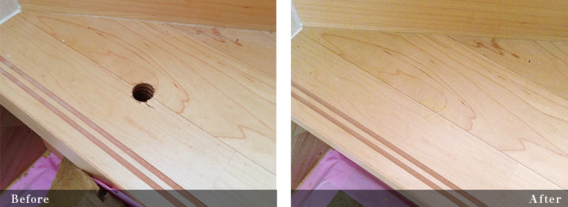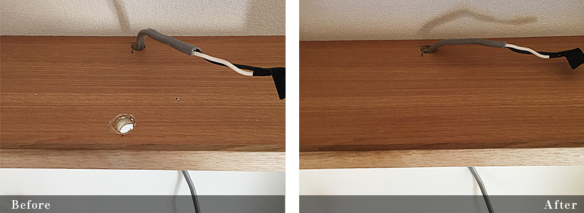 収納内に不手際であいてしまった穴を、どうにか埋めてほしいとの依頼でした。