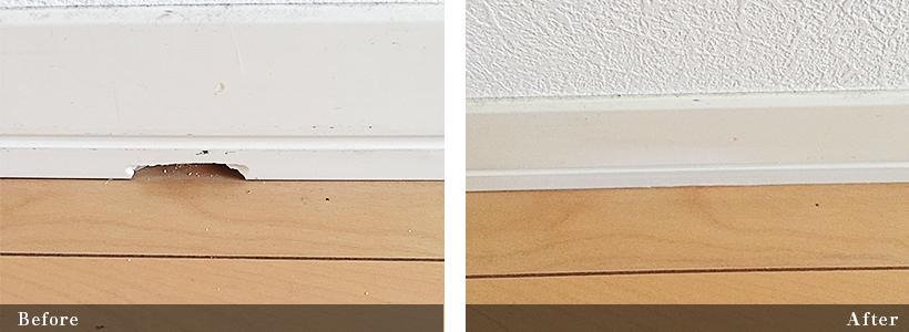 引き渡し後間もなくの家で、犬がかじってえぐれてしまった為、直して欲しいとの依頼でした。