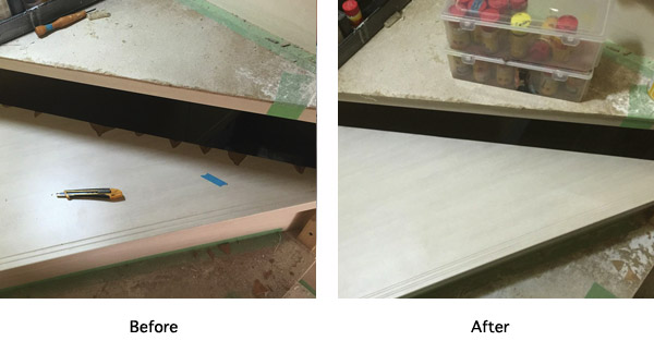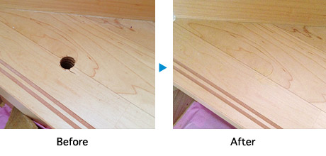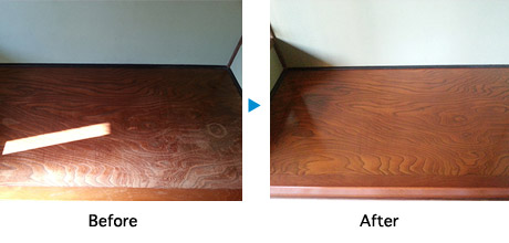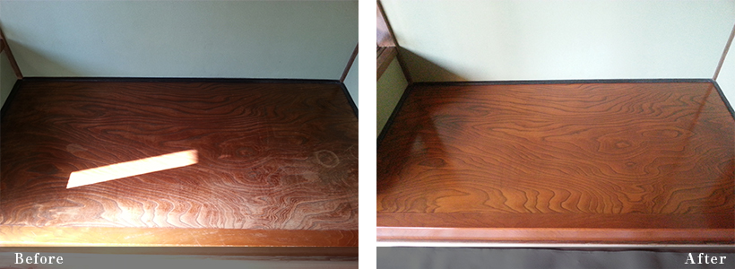 ホテルの客間の机だったため、時間と費用をかけずに直したいということで、依頼がありました。