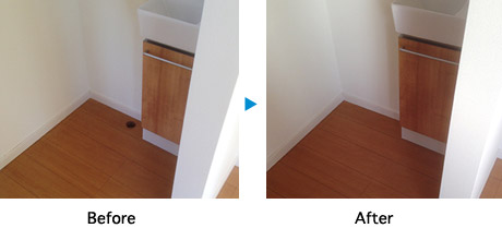 賃貸退去後のメンテナンスで、浴室前の床が表面劣化により腐食していたため。