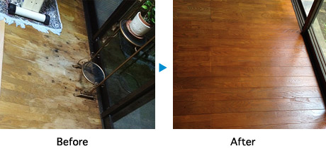 水分を含んで、フローリングの表面が浮いて剥がれてしまったため。